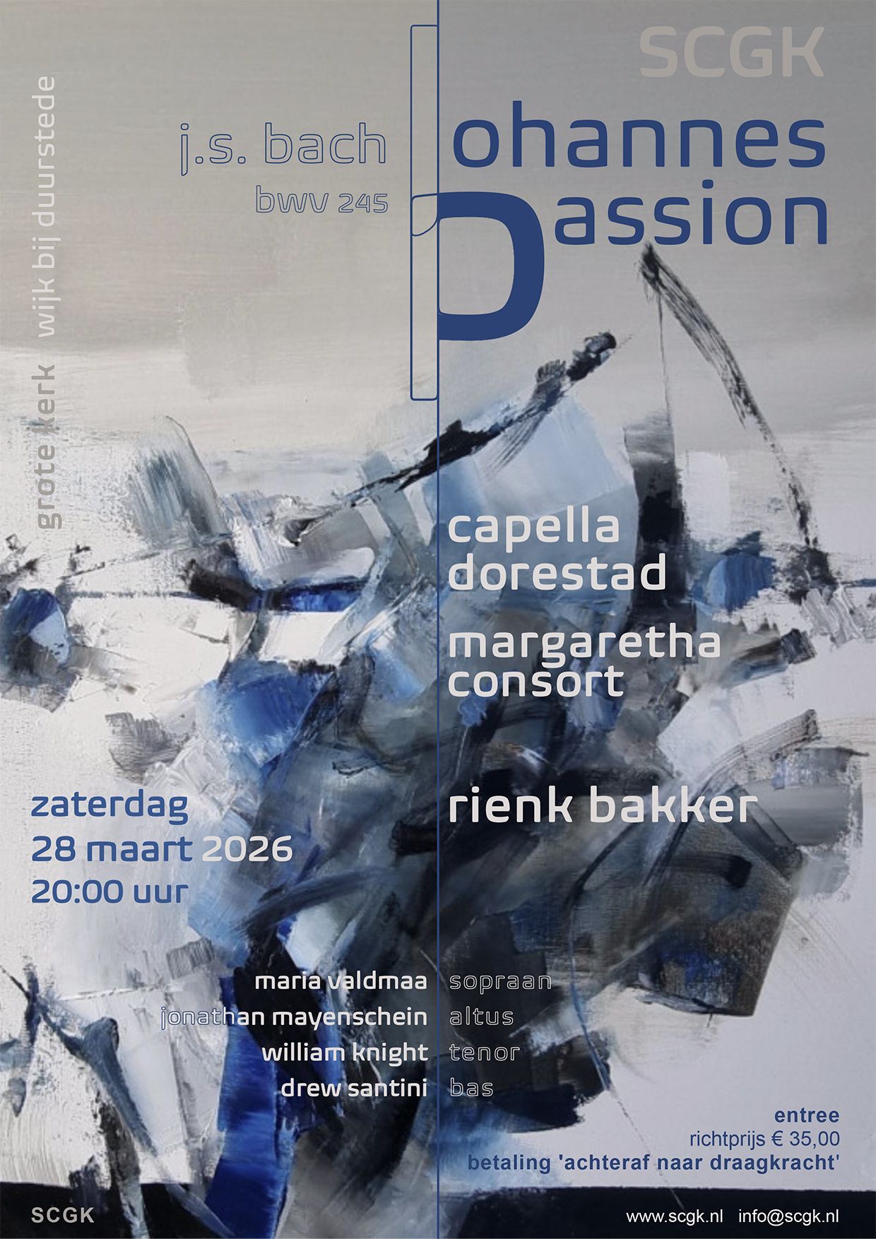 Zaterdag 28 maart klinkt de Johannes Passion van Bach door Capella Dorestad en het Margaretha Consort.